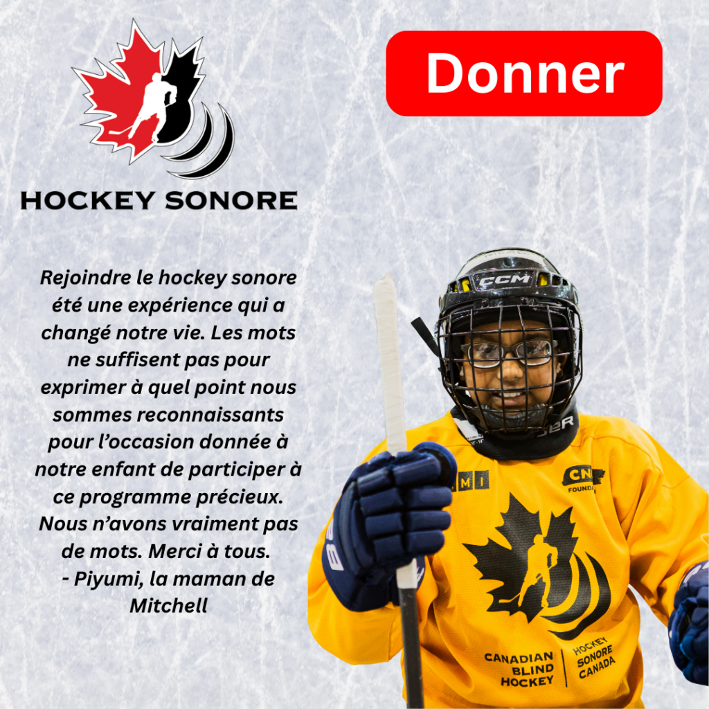 /tournoi-national-de-hockey-sonoreHockey sonore Canada est un organisme de bienfaisance qui change la vie des enfants et des jeunes aveugles ou malvoyants en offrant des programmes de hockey sonore, notamment: des séances d’initiation, des camps de développement, des compétitions régionales et nationales et en soutenant les équipes canadiennes locales de hockey sonore.